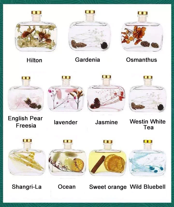 | Fragrance | Pear, Hilton, gardenia, osmanthus, jasmine, white tea, lavender, ocean, sweet orange, wild bluebell… |